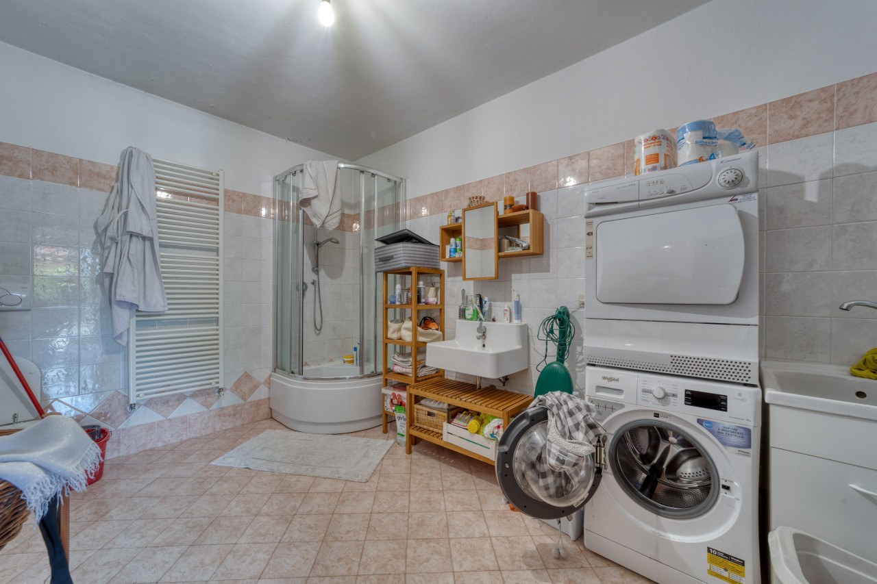 Piano terra - ingresso, ampia lavanderia, garage doppio e zona ricovero attrezzi/sgombero;