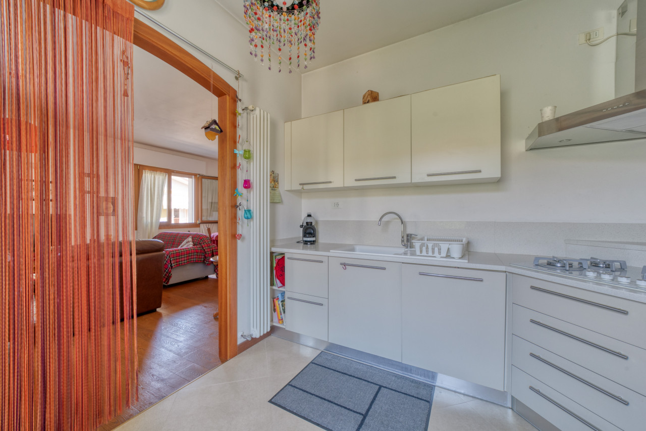APPARTAMENTO AL PIANO TERRA : parzialmente ristrutturato ( cambiati infissi e pavimenti, riscaldamento autonomo da rinnovare), composto da ingresso , cucina , soggiorno , camera da 16 mq. , possibile ulteriore cameretta , bagno , garage .